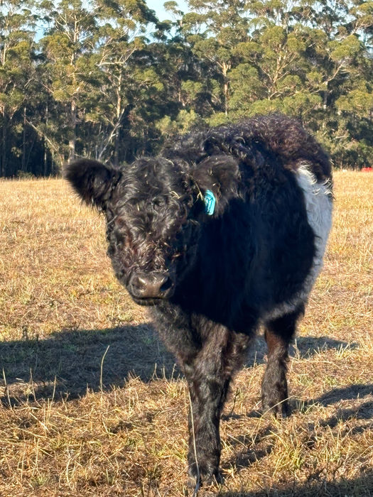 SOLD - Miniature Belted Galloway Heifer